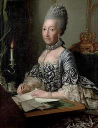 | Keywords: Ulrike Sophie of Mecklenburg-Schwerin att Matthieu.jpg attributed to Portrait of Ulrike Sophie Princess of Mecklenburg-Schwerin 1723-1813 in a silver dress with lace cuffs seated at a writing desk century 18 Oil on canvas cm 86 71 4 Christie's online 5393156 2848 439 Amsterdam 14 - 16 December 2010 other versions PD-old-100-1923 DEFAULTSORT Matthieu; Georg David; Portrait female Ulrike Sophie zu Mecklenburg; Christie ™s 2010 Georg David Matthieu 18th-century portrait paintings location missing 1770c Ulrike Sophie of Mecklenburg 1770c 18th-century portrait paintings not categorised by year F 18th-century cabinet portraits 18th-century oil on canvas paintings 18th-century oil portraits of sitting women at half length 1770c Desks in portrait paintings 1770c Engageantes in art Female hair fashion in art Females with blue satin dresses in art 1770c Females with chokers in art 1770c Females with pearl bracelets in art 1770c Paintings of candles Portrait paintings of women with crowns on cushions 1770c Portrait paintings holding quills 1770c Females with silver dresses in art 1770c Writing desks |