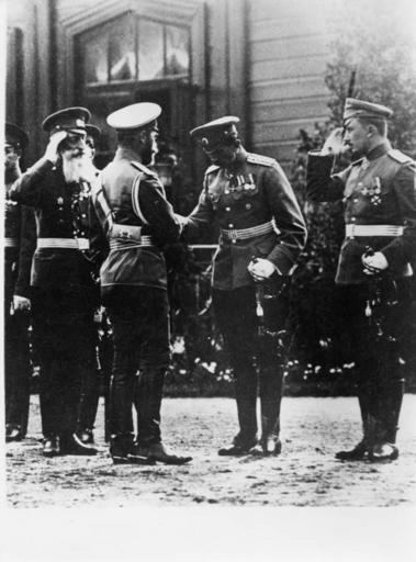 | Keywords: Ulyanin Sergey Alekseevich (5).jpg ru Импе ато у иколаю II Александ овичу п едставляется начальник АО ОВШ подполковник С А Ульянин Слева начальник ОВШ гене ал-лейтенант А Кованько сп ава помощник начальника АО штабс-капитан Г Г Го шков К асное село 25 июля 1913 г 1913-07-25 http //ulianin com/wp-content/uploads/2008/03/nac-geroy-03 jpg author other versions PD-old-70-1923 Sergey Ulyanin 1871 births 1921 deaths Uploaded with UploadWizard Stabs-kapitan | ||||