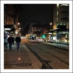 Keywords: nuit night rue street profondeur rails tramway passants reflets lumières lyon france