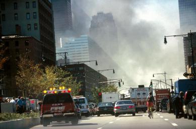 | Keywords: road outdoor The 250 color slides made at the World Trade Towers in New York City on September 11, 2001, received from the New York District Attorney's office from an unattributed photographer, are in the public domain. Privacy and publicity rights may apply. These slides were received from the New York District Attorney's office with the photographer relinquishing any and all copyright and right of attribution. Therefore, the photographer's name will not be associated with these photographs. Note – This image has been digitally adjusted for one or more of the following: - fade correction, - color, contrast, and/or saturation enhancement - selected spot and/or scratch removal - cropped for composition and/or to accentuate subject matter - straighten image The 250 color slides made at the World Trade Towers in New York City on September 11, 2001, received from the New York District Attorney's office from an unattributed photographer, are in the public domain. Privacy and publicity rights may apply. These slides were received from the New York District Attorney's office with the photographer relinquishing any and all copyright and right of attribution. Therefore, the photographer's name will not be associated with these photographs. Note – This image has been digitally adjusted for one or more of the following: - fade correction, - color, contrast, and/or saturation enhancement - selected spot and/or scratch removal - cropped for composition and/or to accentuate subject matter - straighten image The 250 color slides made at the World Trade Towers in New York City on September 11, 2001, received from the New York District Attorney's office from an unattributed photographer, are in the public domain. Privacy and publicity rights may apply.