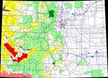 | Keywords: Uncompahgre National Forest location in Colorado.png Uncompahgre National Forest highlighted in red The light green is other Forest Service land yellow is BLM land dark green is National Park brown is National Monument or National Historic Site pink is Indian reservation The reddish lines are Interstate Highways David Benbennick made this map with data from http //nationalatlas gov nationalatlas gov The map uses the azimuthal equidistant projection centered on -105 7167 39 1333 degrees latitude longitude The area outside Colorado is transparent so it should look nice on non-white backgrounds Eventually I will upload the 4 megabyte Metapost script I used to make this map In the mean time see http //www cam cornell edu/~dbenbenn/nationalatlas/Colorado_national_forests/map mp map mp own David Benbennick other versions Colorado national forest maps Uncompahgre National Forest Metapost diagrams |