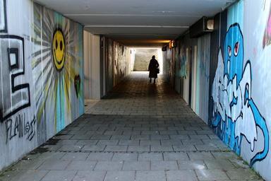 Keywords: underpass tunnel away gang hell dark tunnel vision stairs human person alone immediately