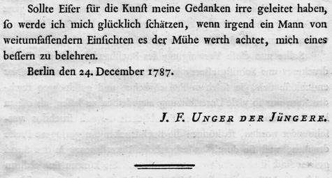 | Keywords: Unger Typografiebeispiel 1787.jpg Beispiel aus Johann Friedrich Unger Etwas über den Buchhandel Buchdruckerey und den Druck außerhalb Landes 14 S 24 5 x 21 cm Berlin 1788 Sonderdruck aus der Monats-Schrift der Akademie der Künste und mechanischen Wissenschaften Bd 1 Berlin 1787 S 37-48 Frühes Druckbeispiel der von Unger erst offiziell 1789 von Firmin Didot erworbenen Lizenz zur Einführung seiner neuen Antiqua-Lettern in verschiedenen deutschen Staaten http //www bassenge com Galerie Bassenge 1787 Johann Friedrich Unger PD-old-100 Images from Galerie Bassenge 1787 books Transitional roman type |