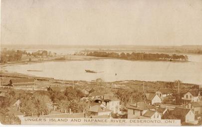 | Keywords: 1900s houses monochrome Photo-postcard of "Unger's Island and the Napanee River, Deseronto, Ont.", looking southeast over Deseronto to Ungers Island. Donated by Sally and Wally Vick. Photo-postcard of "Unger's Island and the Napanee River, Deseronto, Ont.", looking southeast over Deseronto to Ungers Island. Donated by Sally and Wally Vick. |
