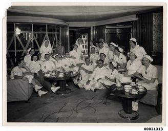 | Keywords: samuel j hood collection samueljhoodcollection hood collection hoodcollection dutch tss oranje ii tssoranjeii oranje hospital ship hospitalship world war ii worldwarii wwii nurses medical personnel medicalpersonnel war robert menzies robertmenzies red cross redcross dutch netherlands indies government dutchnetherlandsindiesgovernment major-general hein ter poorten majorgeneralheinterpoorten poorten cockatoo island cockatooisland cockatoo island dockyards cockatooislanddockyards photo border This photograph depicts unidentified medical personnel in a saloon on board TSS ORANJE II. On 28 June 1941, after a refitting at Cockatoo dock, Australia's Prime Minister Robert Menzies hoisted a Red Cross flag on the Dutch liner TSS ORANJE. The ceremony marked the handing over of the vessel from the Dutch Netherlands Indies Government to the Australian and New Zealand Governments to be used as a hospital ship. This photo is part of the Australian National Maritime Museum’s Samuel J. Hood Studio collection. Sam Hood (1872-1953) was a Sydney photographer with a passion for ships. His 60-year career spanned the romantic age of sail and two world wars. The photos in the collection were taken mainly in Sydney and Newcastle during the first half of the 20th century. The ANMM undertakes research and accepts public comments that enhance the information we hold about images in our collection. This record has been updated accordingly. Photographer: Samuel J. Hood Studio Collection Object no. 00021313 This photograph depicts unidentified medical personnel in a saloon on board TSS ORANJE II. On 28 June 1941, after a refitting at Cockatoo dock, Australia's Prime Minister Robert Menzies hoisted a Red Cross flag on the Dutch liner TSS ORANJE. The ceremony marked the handing over of the vessel from the Dutch Netherlands Indies Government to the Australian and New Zealand Governments to be used as a hospital ship. This photo is part of the Australian National Maritime Museum’s Samuel J. Hood Studio collection. Sam Hood (1872-1953) was a Sydney photographer with a passion for ships. His 60-year career spanned the romantic age of sail and two world wars. The photos in the collection were taken mainly in Sydney and Newcastle during the first half of the 20th century. The ANMM undertakes research and accepts public comments that enhance the information we hold about images in our collection. This record has been updated accordingly. Photographer: Samuel J. Hood Studio Collection Object no. 00021313 |