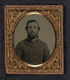 | Keywords: library of congress libraryofcongress dc:identifier=http://hdl.loc.gov/loc.pnp/ppmsca.27177 dc:identifier=httphdllocgovlocpnpppmsca27177 xmlns:dc=http://purl.org/dc/elements/1.1/ xmlns:dc=httppurlorgdcelements11 people picture frame photo border round [Unidentified soldier in Confederate shell jacket] [between 1861 and 1865] 1 photograph : sixth-plate ambrotype, hand-colored ; 9.4 x 8.2 cm (case) Notes: Title devised by Library staff. Case: Rinhart, no. 85. Gift; Tom Liljenquist; 2010; (DLC/PP-2010:105). Subjects: Confederate States of America.--Army--People--1860-1870. Soldiers--Confederate--1860-1870. Military uniforms--Confederate--1860-1870. United States--History--Civil War, 1861-1865--Military personnel--Confederate. Format: Portrait photographs--1860-1870. Ambrotypes--Hand-colored--1860-1870. Rights Info: No known restrictions on publication. Repository: Library of Congress, Prints and Photographs Division, Washington, D.C. 20540 USA, hdl.loc.gov/loc.pnp/pp.print Part Of: Ambrotype/Tintype filing series (Library of Congress) (DLC) 2010650518 Liljenquist Family collection (Library of Congress) (DLC) 2010650519 More information about this collection is available at hdl.loc.gov/loc.pnp/pp.lilj Persistent URL: hdl.loc.gov/loc.pnp/ppmsca.27177 Call Number: AMB/TIN no. 2324 [Unidentified soldier in Confederate shell jacket] [between 1861 and 1865] 1 photograph : sixth-plate ambrotype, hand-colored ; 9.4 x 8.2 cm (case) Notes: Title devised by Library staff. Case: Rinhart, no. 85. Gift; Tom Liljenquist; 2010; (DLC/PP-2010:105). Subjects: Confederate States of America.--Army--People--1860-1870. Soldiers--Confederate--1860-1870. Military uniforms--Confederate--1860-1870. United States--History--Civil War, 1861-1865--Military personnel--Confederate. Format: Portrait photographs--1860-1870. Ambrotypes--Hand-colored--1860-1870. Rights Info: No known restrictions on publication. Repository: Library of Congress, Prints and Photographs Division, Washington, D.C. 20540 USA, hdl.loc.gov/loc.pnp/pp.print Part Of: Ambrotype/Tintype filing series (Library of Congress) (DLC) 2010650518 Liljenquist Family collection (Library of Congress) (DLC) 2010650519 More information about this collection is available at hdl.loc.gov/loc.pnp/pp.lilj Persistent URL: hdl.loc.gov/loc.pnp/ppmsca.27177 Call Number: AMB/TIN no. 2324 |