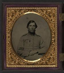 | Keywords: library of congress libraryofcongress dc:identifier=http://hdl.loc.gov/loc.pnp/ppmsca.27154 dc:identifier=httphdllocgovlocpnpppmsca27154 xmlns:dc=http://purl.org/dc/elements/1.1/ xmlns:dc=httppurlorgdcelements11 people picture frame round photo border [Unidentified soldier in Confederate shell jacket] [between 1861 and 1865] 1 photograph : sixth-plate ambrotype, hand-colored ; 9.6 x 8.5 cm (case) Notes: Title devised by Library staff. Case: Berg, no. 1-120. Gift; Tom Liljenquist; 2010; (DLC/PP-2010:105). Subjects: Confederate States of America.--Army--People--1860-1870. Soldiers--Confederate--1860-1870. Military uniforms--Confederate--1860-1870. United States--History--Civil War, 1861-1865--Military personnel--Confederate. Format: Portrait photographs--1860-1870. Ambrotypes--Hand-colored--1860-1870. Rights Info: No known restrictions on publication. Repository: Library of Congress, Prints and Photographs Division, Washington, D.C. 20540 USA, hdl.loc.gov/loc.pnp/pp.print Part Of: Ambrotype/Tintype filing series (Library of Congress) (DLC) 2010650518 Liljenquist Family collection (Library of Congress) (DLC) 2010650519 More information about this collection is available at hdl.loc.gov/loc.pnp/pp.lilj Persistent URL: hdl.loc.gov/loc.pnp/ppmsca.27154 Call Number: AMB/TIN no. 2301 [Unidentified soldier in Confederate shell jacket] [between 1861 and 1865] 1 photograph : sixth-plate ambrotype, hand-colored ; 9.6 x 8.5 cm (case) Notes: Title devised by Library staff. Case: Berg, no. 1-120. Gift; Tom Liljenquist; 2010; (DLC/PP-2010:105). Subjects: Confederate States of America.--Army--People--1860-1870. Soldiers--Confederate--1860-1870. Military uniforms--Confederate--1860-1870. United States--History--Civil War, 1861-1865--Military personnel--Confederate. Format: Portrait photographs--1860-1870. Ambrotypes--Hand-colored--1860-1870. Rights Info: No known restrictions on publication. Repository: Library of Congress, Prints and Photographs Division, Washington, D.C. 20540 USA, hdl.loc.gov/loc.pnp/pp.print Part Of: Ambrotype/Tintype filing series (Library of Congress) (DLC) 2010650518 Liljenquist Family collection (Library of Congress) (DLC) 2010650519 More information about this collection is available at hdl.loc.gov/loc.pnp/pp.lilj Persistent URL: hdl.loc.gov/loc.pnp/ppmsca.27154 Call Number: AMB/TIN no. 2301 |