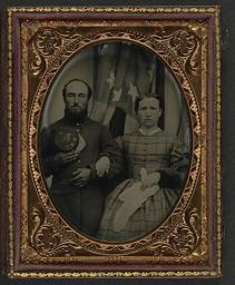 | Keywords: library of congress libraryofcongress dc:identifier=http://hdl.loc.gov/loc.pnp/ppmsca.26935 dc:identifier=httphdllocgovlocpnpppmsca26935 xmlns:dc=http://purl.org/dc/elements/1.1/ xmlns:dc=httppurlorgdcelements11 civil war civilwar us civil war uscivilwar united states unitedstates soldier american american civil war americancivilwar uniform military 12th new hampshire infantry 12thnewhampshireinfantry infantry groupshot people photo border picture frame [Unidentified soldier in Union frock coat holding Company G, 12th New Hampshire Infantry Regiment forage cap next to unidentified woman in front of an American flag] [between 1861 and 1865] 1 photograph : quater-plate ambrotype, hand-colored ; 11.8 x 9.4 cm (case) Notes: Title devised by Library staff. Case: Leather floral scroll motif. Gift; Tom Liljenquist; 2010; (DLC/PP-2010:105). Purchased from: The Union Drummer Boy, Gettysburg, Pennsylvania, 2002. Subjects: United States.--Army--New Hampshire Infantry Regiment, 11th (1862-1865)--People--1860-1870. Soldiers--Union--1860-1870. Military uniforms--Union--1860-1870. Women--1860-1870. Couples--1860-1870. Flags--American--1860-1870. United States--History--Civil War, 1861-1865--Military personnel--Union. Format: Group portraits--1860-1870. Portrait photographs--1860-1870. Ambrotypes--Hand-colored--1860-1870. Rights Info: No known restrictions on publication. Repository: Library of Congress, Prints and Photographs Division, Washington, D.C. 20540 USA, hdl.loc.gov/loc.pnp/pp.print Part Of: Ambrotype/Tintype filing series (Library of Congress) (DLC) 2010650518 Liljenquist Family collection (Library of Congress) (DLC) 2010650519 More information about this collection is available at hdl.loc.gov/loc.pnp/pp.lilj Persistent URL: hdl.loc.gov/loc.pnp/ppmsca.26935 Call Number: AMB/TIN no. 2083 [Unidentified soldier in Union frock coat holding Company G, 12th New Hampshire Infantry Regiment forage cap next to unidentified woman in front of an American flag] [between 1861 and 1865] 1 photograph : quater-plate ambrotype, hand-colored ; 11.8 x 9.4 cm (case) Notes: Title devised by Library staff. Case: Leather floral scroll motif. Gift; Tom Liljenquist; 2010; (DLC/PP-2010:105). Purchased from: The Union Drummer Boy, Gettysburg, Pennsylvania, 2002. Subjects: United States.--Army--New Hampshire Infantry Regiment, 11th (1862-1865)--People--1860-1870. Soldiers--Union--1860-1870. Military uniforms--Union--1860-1870. Women--1860-1870. Couples--1860-1870. Flags--American--1860-1870. United States--History--Civil War, 1861-1865--Military personnel--Union. Format: Group portraits--1860-1870. Portrait photographs--1860-1870. Ambrotypes--Hand-colored--1860-1870. Rights Info: No known restrictions on publication. Repository: Library of Congress, Prints and Photographs Division, Washington, D.C. 20540 USA, hdl.loc.gov/loc.pnp/pp.print Part Of: Ambrotype/Tintype filing series (Library of Congress) (DLC) 2010650518 Liljenquist Family collection (Library of Congress) (DLC) 2010650519 More information about this collection is available at hdl.loc.gov/loc.pnp/pp.lilj Persistent URL: hdl.loc.gov/loc.pnp/ppmsca.26935 Call Number: AMB/TIN no. 2083 |