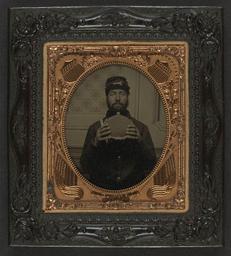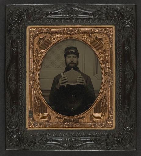 | Keywords: library of congress libraryofcongress dc:identifier=http://hdl.loc.gov/loc.pnp/ppmsca.27519 dc:identifier=httphdllocgovlocpnpppmsca27519 xmlns:dc=http://purl.org/dc/elements/1.1/ xmlns:dc=httppurlorgdcelements11 u.s. civil war uscivilwar american civil war americancivilwar the civil war thecivilwar civil war civilwar war between the states warbetweenthestates united states of america unitedstatesofamerica u.s.a. usa the union theunion union the north thenorth yankee yankees soldier canteen people photo border [Unidentified soldier in Union uniform with canteen] [between 1861 and 1865] 1 photograph : sixth-plate ambrotype, hand-colored ; 12.3 x 11.1 cm (frame) Notes: Title devised by Library staff. Case: Berg, no. 7-42. Additional information in collections file. Gift; Tom Liljenquist; 2010; (DLC/PP-2010:105). Purchased from: Heritage Auction Galleries, Dallas, Texas, 2008, from John Henry Kurtz Collection of American Civil War History. Published in: O'Donnell, Mike. U.S. Army and militia canteens, 1775-1910. Alexandria, Va.: O'Donnell Publications, 2008, pp. 3 and 127. Subjects: United States.--Army--People--1860-1870. Soldiers--Union--1860-1870. Military uniforms--Union--1860-1870. Canteens--1860-1870. United States--History--Civil War, 1861-1865--Military personnel--Union. Format: Portrait photographs--1860-1870. Ambrotypes--Hand-colored--1860-1870. Rights Info: No known restrictions on publication. Repository: Library of Congress, Prints and Photographs Division, Washington, D.C. 20540 USA, hdl.loc.gov/loc.pnp/pp.print Part Of: Ambrotype/Tintype filing series (Library of Congress) (DLC) 2010650518 Liljenquist Family collection (Library of Congress) (DLC) 2010650519 More information about this collection is available at hdl.loc.gov/loc.pnp/pp.lilj Persistent URL: hdl.loc.gov/loc.pnp/ppmsca.27519 Call Number: AMB/TIN no. 5009 [Unidentified soldier in Union uniform with canteen] [between 1861 and 1865] 1 photograph : sixth-plate ambrotype, hand-colored ; 12.3 x 11.1 cm (frame) Notes: Title devised by Library staff. Case: Berg, no. 7-42. Additional information in collections file. Gift; Tom Liljenquist; 2010; (DLC/PP-2010:105). Purchased from: Heritage Auction Galleries, Dallas, Texas, 2008, from John Henry Kurtz Collection of American Civil War History. Published in: O'Donnell, Mike. U.S. Army and militia canteens, 1775-1910. Alexandria, Va.: O'Donnell Publications, 2008, pp. 3 and 127. Subjects: United States.--Army--People--1860-1870. Soldiers--Union--1860-1870. Military uniforms--Union--1860-1870. Canteens--1860-1870. United States--History--Civil War, 1861-1865--Military personnel--Union. Format: Portrait photographs--1860-1870. Ambrotypes--Hand-colored--1860-1870. Rights Info: No known restrictions on publication. Repository: Library of Congress, Prints and Photographs Division, Washington, D.C. 20540 USA, hdl.loc.gov/loc.pnp/pp.print Part Of: Ambrotype/Tintype filing series (Library of Congress) (DLC) 2010650518 Liljenquist Family collection (Library of Congress) (DLC) 2010650519 More information about this collection is available at hdl.loc.gov/loc.pnp/pp.lilj Persistent URL: hdl.loc.gov/loc.pnp/ppmsca.27519 Call Number: AMB/TIN no. 5009 |