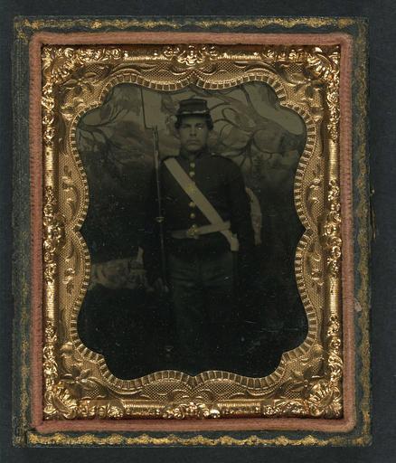 | Keywords: library of congress libraryofcongress dc:identifier=http://hdl.loc.gov/loc.pnp/ppmsca.27351 dc:identifier=httphdllocgovlocpnpppmsca27351 xmlns:dc=http://purl.org/dc/elements/1.1/ xmlns:dc=httppurlorgdcelements11 u.s. civil war uscivilwar american civil war americancivilwar the civil war thecivilwar civil war civilwar war between the states warbetweenthestates united states of america unitedstatesofamerica u.s.a. usa the union theunion union the north thenorth yankee yankees soldier gun musket people picture frame photo border [Unidentified soldier in Union uniform with bayoneted musket in front of painted backdrop showing trees] [between 1861 and 1865] 1 photograph : ninth-plate tintype, hand-colored ; 7.3 x 6.1 cm (case) Notes: Title devised by Library staff. Case: Leather scroll geometric. Gift; Tom Liljenquist; 2010; (DLC/PP-2010:105). Subjects: United States.--Army--People--1860-1870. Soldiers--Union--1860-1870. Military uniforms--Union--1860-1870. Rifles--1860-1870. Bayonets--1860-1870. Backdrops--1860-1870. United States--History--Civil War, 1861-1865--Military personnel--Union. Format: Portrait photographs--1860-1870. Tintypes--Hand-colored--1860-1870. Rights Info: No known restrictions on publication. Repository: Library of Congress, Prints and Photographs Division, Washington, D.C. 20540 USA, hdl.loc.gov/loc.pnp/pp.print Part Of: Ambrotype/Tintype filing series (Library of Congress) (DLC) 2010650518 Liljenquist Family collection (Library of Congress) (DLC) 2010650519 More information about this collection is available at hdl.loc.gov/loc.pnp/pp.lilj Persistent URL: hdl.loc.gov/loc.pnp/ppmsca.27351 Call Number: AMB/TIN no. 2486 [Unidentified soldier in Union uniform with bayoneted musket in front of painted backdrop showing trees] [between 1861 and 1865] 1 photograph : ninth-plate tintype, hand-colored ; 7.3 x 6.1 cm (case) Notes: Title devised by Library staff. Case: Leather scroll geometric. Gift; Tom Liljenquist; 2010; (DLC/PP-2010:105). Subjects: United States.--Army--People--1860-1870. Soldiers--Union--1860-1870. Military uniforms--Union--1860-1870. Rifles--1860-1870. Bayonets--1860-1870. Backdrops--1860-1870. United States--History--Civil War, 1861-1865--Military personnel--Union. Format: Portrait photographs--1860-1870. Tintypes--Hand-colored--1860-1870. Rights Info: No known restrictions on publication. Repository: Library of Congress, Prints and Photographs Division, Washington, D.C. 20540 USA, hdl.loc.gov/loc.pnp/pp.print Part Of: Ambrotype/Tintype filing series (Library of Congress) (DLC) 2010650518 Liljenquist Family collection (Library of Congress) (DLC) 2010650519 More information about this collection is available at hdl.loc.gov/loc.pnp/pp.lilj Persistent URL: hdl.loc.gov/loc.pnp/ppmsca.27351 Call Number: AMB/TIN no. 2486 |