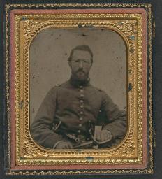 | Keywords: library of congress libraryofcongress dc:identifier=http://hdl.loc.gov/loc.pnp/ppmsca.26941 dc:identifier=httphdllocgovlocpnpppmsca26941 xmlns:dc=http://purl.org/dc/elements/1.1/ xmlns:dc=httppurlorgdcelements11 u.s. civil war uscivilwar american civil war americancivilwar the civil war thecivilwar civil war civilwar war between the states warbetweenthestates united states of america unitedstatesofamerica u.s.a. usa the union theunion union the north thenorth yankee yankees soldier glasses eyeglasses gun pistol revolver pistols sword people picture frame photo border ancient [Unidentified soldier in Union uniform with dual revolvers and sword, wearing eyeglasses] [between 1861 and 1865] 1 photograph : sixth-plate ambrotype, hand-colored ; 9.3 x 8.1 cm (case) Notes: Title devised by Library staff. Case: Leather with two parallel ornate stripes and centered scroll motif. Gift; Tom Liljenquist; 2010; (DLC/PP-2010:105). Subjects: United States.--Army--People--1860-1870. Soldiers--Union--1860-1870. Handguns--1860-1870. Daggers & swords--1860-1870. Eyeglasses--1860-1870. Military uniforms--Union--1860-1870. United States--History--Civil War, 1861-1865--Military personnel--Union. Format: Portrait photographs--1860-1870. Ambrotypes--Hand-colored--1860-1870. Rights Info: No known restrictions on publication. Repository: Library of Congress, Prints and Photographs Division, Washington, D.C. 20540 USA, hdl.loc.gov/loc.pnp/pp.print Part Of: Ambrotype/Tintype filing series (Library of Congress) (DLC) 2010650518 Liljenquist Family collection (Library of Congress) (DLC) 2010650519 More information about this collection is available at hdl.loc.gov/loc.pnp/pp.lilj Persistent URL: hdl.loc.gov/loc.pnp/ppmsca.26941 Call Number: AMB/TIN no. 2089 [Unidentified soldier in Union uniform with dual revolvers and sword, wearing eyeglasses] [between 1861 and 1865] 1 photograph : sixth-plate ambrotype, hand-colored ; 9.3 x 8.1 cm (case) Notes: Title devised by Library staff. Case: Leather with two parallel ornate stripes and centered scroll motif. Gift; Tom Liljenquist; 2010; (DLC/PP-2010:105). Subjects: United States.--Army--People--1860-1870. Soldiers--Union--1860-1870. Handguns--1860-1870. Daggers & swords--1860-1870. Eyeglasses--1860-1870. Military uniforms--Union--1860-1870. United States--History--Civil War, 1861-1865--Military personnel--Union. Format: Portrait photographs--1860-1870. Ambrotypes--Hand-colored--1860-1870. Rights Info: No known restrictions on publication. Repository: Library of Congress, Prints and Photographs Division, Washington, D.C. 20540 USA, hdl.loc.gov/loc.pnp/pp.print Part Of: Ambrotype/Tintype filing series (Library of Congress) (DLC) 2010650518 Liljenquist Family collection (Library of Congress) (DLC) 2010650519 More information about this collection is available at hdl.loc.gov/loc.pnp/pp.lilj Persistent URL: hdl.loc.gov/loc.pnp/ppmsca.26941 Call Number: AMB/TIN no. 2089 |