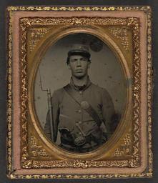| Keywords: library of congress libraryofcongress dc:identifier=http://hdl.loc.gov/loc.pnp/ppmsca.27021 dc:identifier=httphdllocgovlocpnpppmsca27021 xmlns:dc=http://purl.org/dc/elements/1.1/ xmlns:dc=httppurlorgdcelements11 people picture frame photo border ancient [Unidentified soldier in Union uniform and Company C hat with bayoneted musket, revolver, knife, and cap box] [between 1861 and 1865] 1 photograph : ninth-plate ambrotype, hand-colored ; 7.2 x 6.1 cm (case) Notes: Title devised by Library staff. Case: Rinhart, no. 154. Gift; Tom Liljenquist; 2010; (DLC/PP-2010:105). Subjects: Soldiers--Union--1860-1870. Military uniforms--Union--1860-1870. Bayonets--1860-1870. Rifles--1860-1870. Handguns--1860-1870. Knives--1860-1870. United States--History--Civil War, 1861-1865--Military personnel--Union. Format: Portrait photographs--1860-1870. Ambrotypes--Hand-colored--1860-1870. Rights Info: No known restrictions on publication. Repository: Library of Congress, Prints and Photographs Division, Washington, D.C. 20540 USA, hdl.loc.gov/loc.pnp/pp.print Part Of: Ambrotype/Tintype filing series (Library of Congress) (DLC) 2010650518 Liljenquist Family collection (Library of Congress) (DLC) 2010650519 More information about this collection is available at hdl.loc.gov/loc.pnp/pp.lilj Persistent URL: hdl.loc.gov/loc.pnp/ppmsca.27021 Call Number: AMB/TIN no. 2166 [Unidentified soldier in Union uniform and Company C hat with bayoneted musket, revolver, knife, and cap box] [between 1861 and 1865] 1 photograph : ninth-plate ambrotype, hand-colored ; 7.2 x 6.1 cm (case) Notes: Title devised by Library staff. Case: Rinhart, no. 154. Gift; Tom Liljenquist; 2010; (DLC/PP-2010:105). Subjects: Soldiers--Union--1860-1870. Military uniforms--Union--1860-1870. Bayonets--1860-1870. Rifles--1860-1870. Handguns--1860-1870. Knives--1860-1870. United States--History--Civil War, 1861-1865--Military personnel--Union. Format: Portrait photographs--1860-1870. Ambrotypes--Hand-colored--1860-1870. Rights Info: No known restrictions on publication. Repository: Library of Congress, Prints and Photographs Division, Washington, D.C. 20540 USA, hdl.loc.gov/loc.pnp/pp.print Part Of: Ambrotype/Tintype filing series (Library of Congress) (DLC) 2010650518 Liljenquist Family collection (Library of Congress) (DLC) 2010650519 More information about this collection is available at hdl.loc.gov/loc.pnp/pp.lilj Persistent URL: hdl.loc.gov/loc.pnp/ppmsca.27021 Call Number: AMB/TIN no. 2166 |
