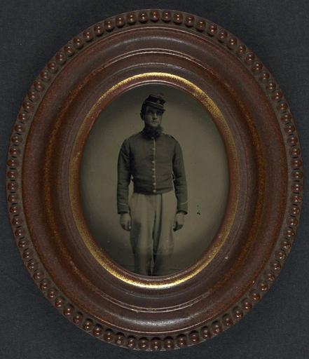 | Keywords: library of congress libraryofcongress dc:identifier=http://hdl.loc.gov/loc.pnp/ppmsca.27442 dc:identifier=httphdllocgovlocpnpppmsca27442 xmlns:dc=http://purl.org/dc/elements/1.1/ xmlns:dc=httppurlorgdcelements11 u.s. civil war uscivilwar american civil war americancivilwar the civil war thecivilwar civil war civilwar war between the states warbetweenthestates united states of america unitedstatesofamerica u.s.a. usa the union theunion union the north thenorth yankee yankees soldier people indoor [Unidentified soldier in Union uniform and kepi] [between 1861 and 1865] 1 photograph : oval ninth-plate tintype, hand-colored ; 9.8 x 8.6 cm (frame) Notes: Title devised by Library staff. Case: Berg, no. 7-65G. Gift; Tom Liljenquist; 2010; (DLC/PP-2010:105). Subjects: United States.--Army.--People--1860-1870. Soldiers--Union--1860-1870. Military uniforms--Union--1860-1870. United States--History--Civil War, 1861-1865--Military personnel--Union. Format: Portrait photographs--1860-1870. Tintypes--Hand-colored--1860-1870. Rights Info: No known restrictions on publication. Repository: Library of Congress, Prints and Photographs Division, Washington, D.C. 20540 USA, hdl.loc.gov/loc.pnp/pp.print Part Of: Ambrotype/Tintype filing series (Library of Congress) (DLC) 2010650518 Liljenquist Family collection (Library of Congress) (DLC) 2010650519 More information about this collection is available at hdl.loc.gov/loc.pnp/pp.lilj Persistent URL: hdl.loc.gov/loc.pnp/ppmsca.27442 Call Number: AMB/TIN no. 2571 [Unidentified soldier in Union uniform and kepi] [between 1861 and 1865] 1 photograph : oval ninth-plate tintype, hand-colored ; 9.8 x 8.6 cm (frame) Notes: Title devised by Library staff. Case: Berg, no. 7-65G. Gift; Tom Liljenquist; 2010; (DLC/PP-2010:105). Subjects: United States.--Army.--People--1860-1870. Soldiers--Union--1860-1870. Military uniforms--Union--1860-1870. United States--History--Civil War, 1861-1865--Military personnel--Union. Format: Portrait photographs--1860-1870. Tintypes--Hand-colored--1860-1870. Rights Info: No known restrictions on publication. Repository: Library of Congress, Prints and Photographs Division, Washington, D.C. 20540 USA, hdl.loc.gov/loc.pnp/pp.print Part Of: Ambrotype/Tintype filing series (Library of Congress) (DLC) 2010650518 Liljenquist Family collection (Library of Congress) (DLC) 2010650519 More information about this collection is available at hdl.loc.gov/loc.pnp/pp.lilj Persistent URL: hdl.loc.gov/loc.pnp/ppmsca.27442 Call Number: AMB/TIN no. 2571 |