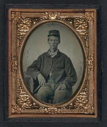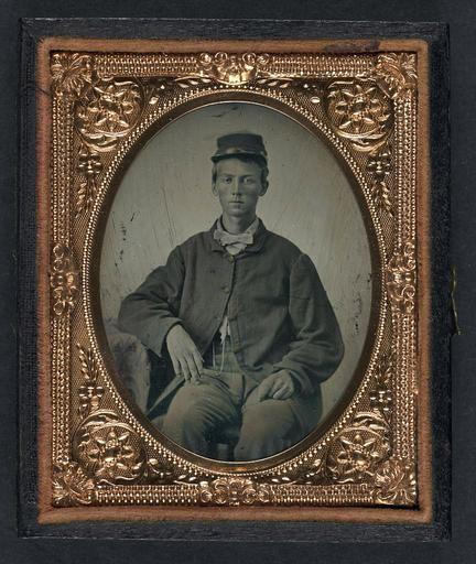 | Keywords: library of congress libraryofcongress dc:identifier=http://hdl.loc.gov/loc.pnp/ppmsca.27406 dc:identifier=httphdllocgovlocpnpppmsca27406 xmlns:dc=http://purl.org/dc/elements/1.1/ xmlns:dc=httppurlorgdcelements11 u.s. civil war uscivilwar american civil war americancivilwar the civil war thecivilwar civil war civilwar war between the states warbetweenthestates united states of america unitedstatesofamerica u.s.a. usa the union theunion union the north thenorth yankee yankees soldier people picture frame photo border [Unidentified soldier in Union uniform] [between 1861 and 1865] 1 photograph : ninth-plate ambrotype, hand-colored ; 7.3 x 6.1 cm (case) Notes: Title devised by Library staff. Case: Leather geometric scroll. Gift; Tom Liljenquist; 2010; (DLC/PP-2010:105). Subjects: United States.--Army.--People--1860-1870. Soldiers--Union--1860-1870. Military uniforms--Union--1860-1870. United States--History--Civil War, 1861-1865--Military personnel--Union. Format: Portrait photographs--1860-1870. Ambrotypes--Hand-colored--1860-1870. Rights Info: No known restrictions on publication. Repository: Library of Congress, Prints and Photographs Division, Washington, D.C. 20540 USA, hdl.loc.gov/loc.pnp/pp.print Part Of: Ambrotype/Tintype filing series (Library of Congress) (DLC) 2010650518 Liljenquist Family collection (Library of Congress) (DLC) 2010650519 More information about this collection is available at hdl.loc.gov/loc.pnp/pp.lilj Persistent URL: hdl.loc.gov/loc.pnp/ppmsca.27406 Call Number: AMB/TIN no. 2541 [Unidentified soldier in Union uniform] [between 1861 and 1865] 1 photograph : ninth-plate ambrotype, hand-colored ; 7.3 x 6.1 cm (case) Notes: Title devised by Library staff. Case: Leather geometric scroll. Gift; Tom Liljenquist; 2010; (DLC/PP-2010:105). Subjects: United States.--Army.--People--1860-1870. Soldiers--Union--1860-1870. Military uniforms--Union--1860-1870. United States--History--Civil War, 1861-1865--Military personnel--Union. Format: Portrait photographs--1860-1870. Ambrotypes--Hand-colored--1860-1870. Rights Info: No known restrictions on publication. Repository: Library of Congress, Prints and Photographs Division, Washington, D.C. 20540 USA, hdl.loc.gov/loc.pnp/pp.print Part Of: Ambrotype/Tintype filing series (Library of Congress) (DLC) 2010650518 Liljenquist Family collection (Library of Congress) (DLC) 2010650519 More information about this collection is available at hdl.loc.gov/loc.pnp/pp.lilj Persistent URL: hdl.loc.gov/loc.pnp/ppmsca.27406 Call Number: AMB/TIN no. 2541 |