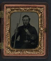 | Keywords: library of congress libraryofcongress dc:identifier=http://hdl.loc.gov/loc.pnp/ppmsca.27344 dc:identifier=httphdllocgovlocpnpppmsca27344 xmlns:dc=http://purl.org/dc/elements/1.1/ xmlns:dc=httppurlorgdcelements11 u.s. civil war uscivilwar american civil war americancivilwar the civil war thecivilwar civil war civilwar war between the states warbetweenthestates united states of america unitedstatesofamerica u.s.a. usa the union theunion union the north thenorth yankee yankees soldier gun musket picture frame people indoor photo border [Unidentified soldier in Union uniform and Company K, 137th regiment forage cap with bayoneted musket] [between 1861 and 1865] 1 photograph : ninth-plate tintype, hand-colored ; 7.6 x 6.3 cm (case) Notes: Title devised by Library staff. Case: Berg, no. 3-247. Gift; Tom Liljenquist; 2010; (DLC/PP-2010:105). Subjects: United States.--Army--People--1860-1870. Soldiers--Union--1860-1870. Military uniforms--Union--1860-1870. Rifles--1860-1870. Bayonets--1860-1870. United States--History--Civil War, 1861-1865--Military personnel--Union. Format: Portrait photographs--1860-1870. Tintypes--Hand-colored--1860-1870. Rights Info: No known restrictions on publication. Repository: Library of Congress, Prints and Photographs Division, Washington, D.C. 20540 USA, hdl.loc.gov/loc.pnp/pp.print Part Of: Ambrotype/Tintype filing series (Library of Congress) (DLC) 2010650518 Liljenquist Family collection (Library of Congress) (DLC) 2010650519 More information about this collection is available at hdl.loc.gov/loc.pnp/pp.lilj Persistent URL: hdl.loc.gov/loc.pnp/ppmsca.27344 Call Number: AMB/TIN no. 2481 [Unidentified soldier in Union uniform and Company K, 137th regiment forage cap with bayoneted musket] [between 1861 and 1865] 1 photograph : ninth-plate tintype, hand-colored ; 7.6 x 6.3 cm (case) Notes: Title devised by Library staff. Case: Berg, no. 3-247. Gift; Tom Liljenquist; 2010; (DLC/PP-2010:105). Subjects: United States.--Army--People--1860-1870. Soldiers--Union--1860-1870. Military uniforms--Union--1860-1870. Rifles--1860-1870. Bayonets--1860-1870. United States--History--Civil War, 1861-1865--Military personnel--Union. Format: Portrait photographs--1860-1870. Tintypes--Hand-colored--1860-1870. Rights Info: No known restrictions on publication. Repository: Library of Congress, Prints and Photographs Division, Washington, D.C. 20540 USA, hdl.loc.gov/loc.pnp/pp.print Part Of: Ambrotype/Tintype filing series (Library of Congress) (DLC) 2010650518 Liljenquist Family collection (Library of Congress) (DLC) 2010650519 More information about this collection is available at hdl.loc.gov/loc.pnp/pp.lilj Persistent URL: hdl.loc.gov/loc.pnp/ppmsca.27344 Call Number: AMB/TIN no. 2481 |