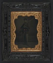 | Keywords: library of congress libraryofcongress dc:identifier=http://hdl.loc.gov/loc.pnp/ppmsca.27556 dc:identifier=httphdllocgovlocpnpppmsca27556 xmlns:dc=http://purl.org/dc/elements/1.1/ xmlns:dc=httppurlorgdcelements11 u.s. civil war uscivilwar american civil war americancivilwar the civil war thecivilwar civil war civilwar war between the states warbetweenthestates united states of america unitedstatesofamerica u.s.a. usa the union theunion union the north thenorth yankee yankees soldier musket picture frame photo border ancient [Unidentified soldier in Union sack coat and forage cap with bayoneted musket] [between 1861 and 1865] 1 photograph : quarter-plate tintype, hand-colored ; 16.0 x 13.5 cm (case) Notes: Title devised by Library staff. Case: Berg, no. 7-21. Gift; Tom Liljenquist; 2010; (DLC/PP-2010:105). Subjects: United States.--Army--People--1860-1870. Soldiers--Union--1860-1870. Military uniforms--Union--1860-1870. Rifles--1860-1870. United States--History--Civil War, 1861-1865--Military personnel--Union. Format: Portrait photographs--1860-1870. Tintypes--Hand-colored--1860-1870. Rights Info: No known restrictions on publication. Repository: Library of Congress, Prints and Photographs Division, Washington, D.C. 20540 USA, hdl.loc.gov/loc.pnp/pp.print Part Of: Ambrotype/Tintype filing series (Library of Congress) (DLC) 2010650518 Liljenquist Family collection (Library of Congress) (DLC) 2010650519 More information about this collection is available at hdl.loc.gov/loc.pnp/pp.lilj Persistent URL: hdl.loc.gov/loc.pnp/ppmsca.27556 Call Number: AMB/TIN no. 5051 [Unidentified soldier in Union sack coat and forage cap with bayoneted musket] [between 1861 and 1865] 1 photograph : quarter-plate tintype, hand-colored ; 16.0 x 13.5 cm (case) Notes: Title devised by Library staff. Case: Berg, no. 7-21. Gift; Tom Liljenquist; 2010; (DLC/PP-2010:105). Subjects: United States.--Army--People--1860-1870. Soldiers--Union--1860-1870. Military uniforms--Union--1860-1870. Rifles--1860-1870. United States--History--Civil War, 1861-1865--Military personnel--Union. Format: Portrait photographs--1860-1870. Tintypes--Hand-colored--1860-1870. Rights Info: No known restrictions on publication. Repository: Library of Congress, Prints and Photographs Division, Washington, D.C. 20540 USA, hdl.loc.gov/loc.pnp/pp.print Part Of: Ambrotype/Tintype filing series (Library of Congress) (DLC) 2010650518 Liljenquist Family collection (Library of Congress) (DLC) 2010650519 More information about this collection is available at hdl.loc.gov/loc.pnp/pp.lilj Persistent URL: hdl.loc.gov/loc.pnp/ppmsca.27556 Call Number: AMB/TIN no. 5051 |
