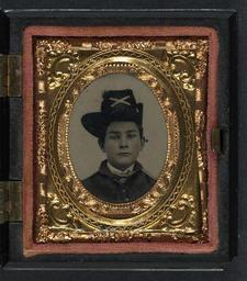 | Keywords: library of congress libraryofcongress dc:identifier=http://hdl.loc.gov/loc.pnp/ppmsca.27462 dc:identifier=httphdllocgovlocpnpppmsca27462 xmlns:dc=http://purl.org/dc/elements/1.1/ xmlns:dc=httppurlorgdcelements11 u.s. civil war uscivilwar american civil war americancivilwar the civil war thecivilwar civil war civilwar war between the states warbetweenthestates united states of america unitedstatesofamerica u.s.a. usa the union theunion union the north thenorth yankee yankees soldier picture frame people photo border [Unidentified young soldier in Union uniform and artillery Hardee hat] [between 1861 and 1865] 1 photograph : sixteenth-plate tintype, hand-colored ; 5.4 x 4.8 cm (case) Notes: Title devised by Library staff. Case: Berg, no. 1-181. Gift; Tom Liljenquist; 2010; (DLC/PP-2010:105). Published in: O'Donnell, Michael J. and J. Duncan Campbell. American military headgear insignia. Alexandria, Virginia: O'Donnell Publishing, 2004, p. 130. Subjects: United States.--Army.--People--1860-1870. Soldiers--Union--1860-1870. Military uniforms--Union--1860-1870. United States--History--Civil War, 1861-1865--Military personnel--Union. Format: Portrait photographs--1860-1870. Tintypes--Hand-colored--1860-1870. Rights Info: No known restrictions on publication. Repository: Library of Congress, Prints and Photographs Division, Washington, D.C. 20540 USA, hdl.loc.gov/loc.pnp/pp.print Part Of: Ambrotype/Tintype filing series (Library of Congress) (DLC) 2010650518 Liljenquist Family collection (Library of Congress) (DLC) 2010650519 More information about this collection is available at hdl.loc.gov/loc.pnp/pp.lilj Persistent URL: hdl.loc.gov/loc.pnp/ppmsca.27462 Call Number: AMB/TIN no. 2589 [Unidentified young soldier in Union uniform and artillery Hardee hat] [between 1861 and 1865] 1 photograph : sixteenth-plate tintype, hand-colored ; 5.4 x 4.8 cm (case) Notes: Title devised by Library staff. Case: Berg, no. 1-181. Gift; Tom Liljenquist; 2010; (DLC/PP-2010:105). Published in: O'Donnell, Michael J. and J. Duncan Campbell. American military headgear insignia. Alexandria, Virginia: O'Donnell Publishing, 2004, p. 130. Subjects: United States.--Army.--People--1860-1870. Soldiers--Union--1860-1870. Military uniforms--Union--1860-1870. United States--History--Civil War, 1861-1865--Military personnel--Union. Format: Portrait photographs--1860-1870. Tintypes--Hand-colored--1860-1870. Rights Info: No known restrictions on publication. Repository: Library of Congress, Prints and Photographs Division, Washington, D.C. 20540 USA, hdl.loc.gov/loc.pnp/pp.print Part Of: Ambrotype/Tintype filing series (Library of Congress) (DLC) 2010650518 Liljenquist Family collection (Library of Congress) (DLC) 2010650519 More information about this collection is available at hdl.loc.gov/loc.pnp/pp.lilj Persistent URL: hdl.loc.gov/loc.pnp/ppmsca.27462 Call Number: AMB/TIN no. 2589 |