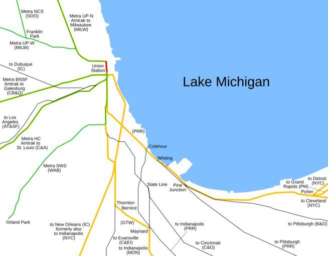 | Keywords: Union Station new approaches.svg The approaches to Union Station in Chicago after Penn Central and Amtrak started consolidating terminals traced on USGS topos Current Amtrak routes are orange and Metra routes are green Former Amtrak routes are thin black lines User SPUI own 2005-11-18 spuimap Union Station Chicago Rail transport maps of Illinois |