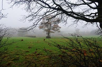 Keywords: united kingdom nature background tree field grass green fog season autumn