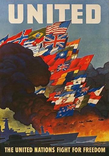 | Keywords: United Nations "Fight For Freedom" poster.jpg Poster created during the Second World War 1943 according to the Declaration of the United Nations of 1942 The Poster created by United States Office of War Information and made by United States Government Printing Office<sup>http //www mpls lib mn us/wpdb/index asp exact MPW00296http //www state nh us/ww2/ww49 html</sup> The poster features the flags of those countries or governments-in-exile that pledged to support the Allied effort beginning from the top-left corner and continuing in rows from left to right Haiti Norway Brazil the United States Cuba the Dominican Republic the United Kingdom Greece Guatemala behind the British Flag South Africa Czechoslovakia China Ethiopia Luxembourg Canada the Soviet Union Belgium Bolivia Yugoslavia Honduras Panama Iraq India Costa Rica El Salvador Australia the Philippines Poland Mexico The Netherlands and New Zealand above the on-going war machine that the United Nations represented The absence of the Free French flag is unusual This poster is important because it represents the origins of the United Nations as a wartime alliance before it was a concrete organization As a work of Office of War Information a branch of the United States Federal Government this work is in public domain Obtained via E-Donkey by Commanderraf Naciones_Unidas_3 jpg 2010-02-22 21 55 UTC Naciones_Unidas_3 jpg Original uploader was Commanderraf at http //en wikipedia org en wikipedia derivative work Beao Crop perspective correction and retouch Beao Naciones_Unidas_3 jpg PD-USGov original upload log This image is a derivative work of the following images File Naciones_Unidas_3 jpg licensed with PD-USGov 2007-03-27T16 09 34Z Liftarn 441x622 74790 Bytes <nowiki> Poster created during en World War II 1943 according to the Declaration of the United Nations of 1942 The Poster created by en United States Office of War Information and made by e</nowiki> Uploaded with derivativeFX Flags in propaganda History of the United Nations World War II posters Latin-american countries in World War II |
