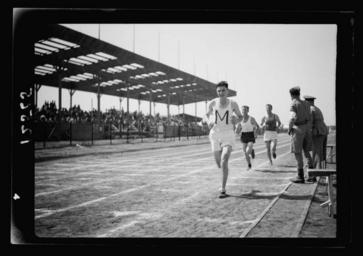 | Keywords: United Services Athletic meeting at Tel Aviv Maccabiah Stadium on Sat. May 2, 1942. Runner, close up.jpg en United Services Athletic meeting at Tel Aviv Maccabiah Stadium on Sat May 2 1942 Runner close up 1942-05-02 LOC-image matpc 21243 http //www loc gov/pictures/related/ fi name q Matson 20Photo 20Service Matson Photo Service photographer Custom license marker 2014 02 18 PD-Matson Uploaded with UploadWizard Maccabiah Stadium | ||||