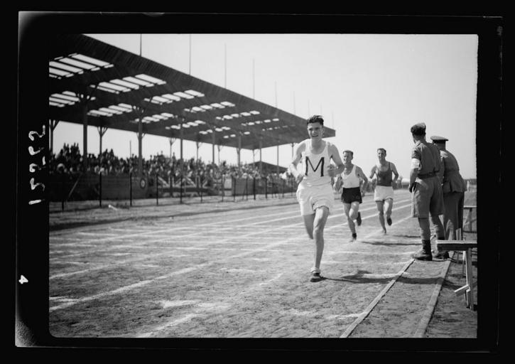 | View Original: | United Services Athletic meeting at Tel Aviv Maccabiah Stadium on Sat. May 2, 1942. Runner, close up.jpg (1024x723) | |||