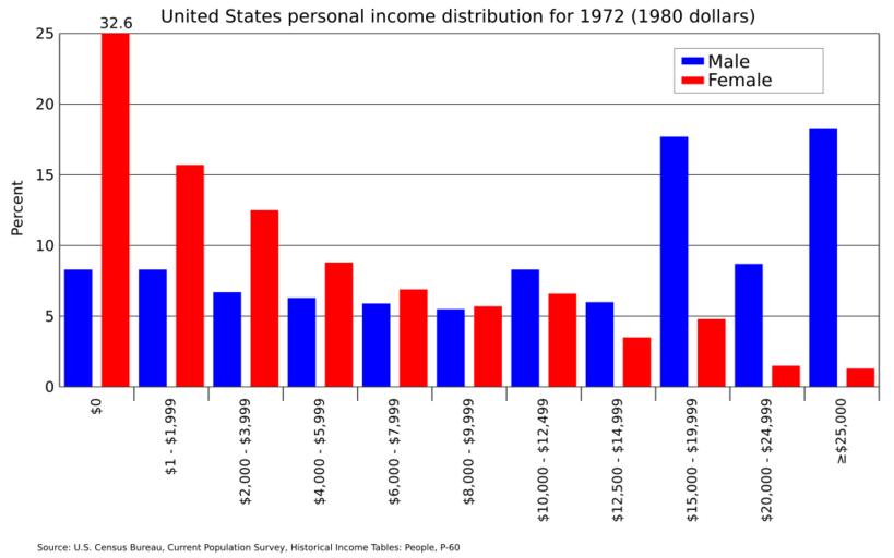 | Keywords: United States personal income by sex in 1980 dollars-1972.svg translate yes en Distribution of personal income by sex in the United States in 1972 in 1980 dollars Source U S Census Bureau Current Population Survey Historical Income People https //www2 census gov/prod2/popscan/p60-132 pdf P-60 Table 44 pgs 138-140 2016-05-05 own Delphi234 other versions Note wikitable - 1980 dollars 2014 dollars - 2 000 5 746 - 4 000 11 492 - 6 000 17 238 - 8 000 22 984 - 10 000 28 730 - 12 500 35 913 - 15 000 43 095 - 20 000 57 460 - 25 000 71 825 cc-zero Income distribution in the United States Personal income in the United States |