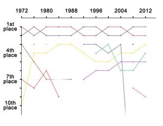 | Keywords: United States presidential election ordinal results line graph (Expanded).png Key FFD900 Libertarian Party 1px AAAAAA solid 3C3B6E Democratic Party 1px AAAAAA solid B22234 Republican Party 1px AAAAAA solid FF0000 Communist Party USA 1px AAAAAA solid 884200 American Independent Party 1px AAAAAA solid 827C1D Eugene J McCarthy 1px AAAAAA solid BDB159 National Unity Party John B Anderson 1px AAAAAA solid 6B47AA Ross Perot/Reform Party of the United States of America 1px AAAAAA solid AB37C8 Constitution Party United States 1px AAAAAA solid 27C851 Greens/Green Party USA/Green Party of the United States 1px AAAAAA solid 000000 Ralph Nader other 1px AAAAAA solid F13A8D Ron Paul other 1px AAAAAA solid Notes <p>Although Ross Perot had not yet formed the Reform Party of the United States of America in 1992 his 1992 run is nevertheless displayed above as a Reform Party run <p>The Green Party that nominated candidates for the presidency in 1996 and 2000 was the Greens/Green Party USA The Green Party that nominated candidates for the presidency ever since has been the Green Party of the United States <p>The graph does not note it but although George W Bush received more electoral votes than Al Gore in 2000 the latter received more raw votes <p>Although Ron Paul did not run in the general elections of 2008 or 2012 supporters nevertheless got his name on the ballot in some states and got him write-in access in others Ron Paul was also the Libertarian Party nominee in 1988 alexpeak com 22 March 2016 allixpeeke 200px Bar graph 350px Expanded bar graph 175px Line graph Cc-zero United States presidential election statistics United States presidential election 1972 United States presidential election 1976 United States presidential election 1980 United States presidential election 1984 United States presidential election 1988 United States presidential election 1992 United States presidential election 1996 United States presidential election 2000 United States presidential election 2004 United States presidential election 2008 Libertarian Party presidential graphs United States Libertarian Party 1972 presidential campaign United States Libertarian Party 1976 presidential campaign United States Libertarian Party 1980 presidential campaign United States Libertarian Party 1984 presidential campaign United States Libertarian Party 1988 presidential campaign United States Libertarian Party 1992 presidential campaign United States Libertarian Party 1996 presidential campaign United States Libertarian Party 2000 presidential campaign United States Libertarian Party 2004 presidential campaign United States Libertarian Party 2008 presidential campaign United States Libertarian Party 2012 presidential campaign United States Democratic Party presidential graphs United States United States Democratic Party 1972 presidential campaign United States Democratic Party 1976 presidential campaign United States Democratic Party 1980 presidential campaign United States Democratic Party 1984 presidential campaign United States Democratic Party 1988 presidential campaign United States Democratic Party 1992 presidential campaign United States Democratic Party 1996 presidential campaign Al Gore presidential campaign 2000 United States Democratic Party 2004 presidential campaign United States Democratic Party 2008 presidential campaign United States Democratic Party 2012 presidential campaign Republican Party presidential graphs United States United States Republican Party 1972 presidential campaign United States Republican Party 1976 presidential campaign United States Republican Party 1980 presidential campaign United States Republican Party 1984 presidential campaign United States Republican Party 1988 presidential campaign United States Republican Party 1992 presidential campaign United States Republican Party 1996 presidential campaign George W Bush presidential campaign 2000 George W Bush presidential campaign 2004 United States Republican Party 2008 presidential campaign United States Republican Party 2012 presidential campaign Green Party of the United States presidential graphs Greens/Green Party USA 1996 presidential campaign Greens/Green Party USA 2000 presidential campaign Green Party of the United States 2004 presidential campaign Green Party of the United States 2008 presidential campaign Green Party of the United States 2012 presidential campaign Constitution Party presidential graphs United States U S Taxpayers Party 1992 presidential campaign U S Taxpayers Party 1996 presidential campaign Constitution Party 2000 presidential campaign United States Constitution Party 2004 presidential campaign United States Constitution Party 2008 presidential campaign United States Constitution Party 2012 presidential campaign United States Ron Paul graphs Ron Paul presidential campaign 2008 Ron Paul presidential campaign 2012 Ralph Nader presidential campaign 2008 Reform Party of the United States of America presidential graphs Ross Perot presidential campaign 1992 Reform Party of the United States of America 1996 presidential campaign Reform Party of the United States of America 2000 presidential campaign Reform Party of the United States of America 2004 presidential campaign Reform Party of the United States of America 2008 presidential campaign American Independent Party presidential graphs Communist Party USA presidential graphs National Unity Party presidential graphs United States Eugene McCarthy presidential graphs Political line charts Charts in English Electoral timelines of the United States of America Dot charts Gary Johnson graphs |