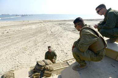 | Keywords: United States and South Korean forces participate in Combined Joint Logistics Over the Shore (CJLOTS) military exercise on the Korean Peninsula 130422-N-LO372-061.jpg en Staff Sgt Anthony E Garcia tank commander and Section Leader San Bernardino Ca left Cpl Allan Valdez gunner Oceanside Ca and Cpl Daniel Pearson loader San Diego assigned to Marine Corps Alpha Company 4th Tanks Battalion based in Camp Pendleton Calif participate in Combined Joint Logistics Over the Shore CJLOTS military exercise underway on the Korean Peninsula April 18-28 The naval exercise aims to improve logistics interoperability communication and cooperation between the United States and South Korea U S Navy photo by Mass Communication Specialist First Class Elisandro T Diaz/Released 2013-04-22 Petty Officer 1st Class Elisandro Diaz https //www dvidshub net/image/921332 130422-N-LO372-061 2013-05-02 21 14 POHANG 26 KR PD-USGov-Military-Navy Marine Corps Base Camp Pendleton Images from DoD uploaded by Fæ |
