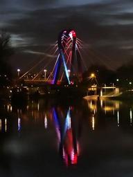 Keywords: university bridge bydgoszcz poland river brda canal crossing structure pylon night