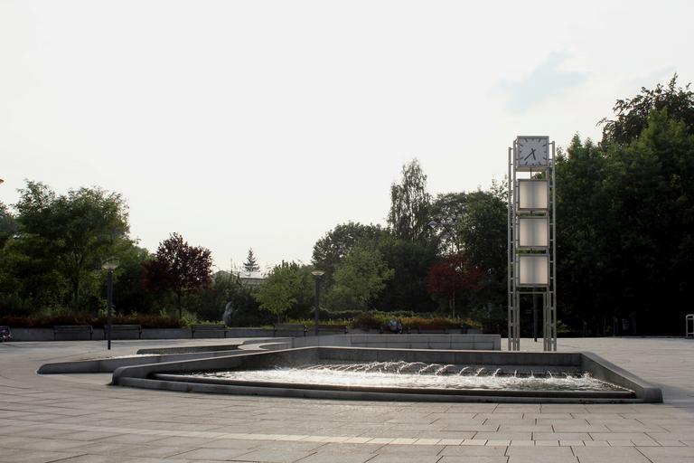 Keywords: Univerzitní náměstí.JPG cs Hodiny a fontána na Univerzitním náměstí v Karviné-Fryštátě 2013-08-23 own Hellooo cc-zero Uploaded with UploadWizard Univerzitní náměstí Karviná
