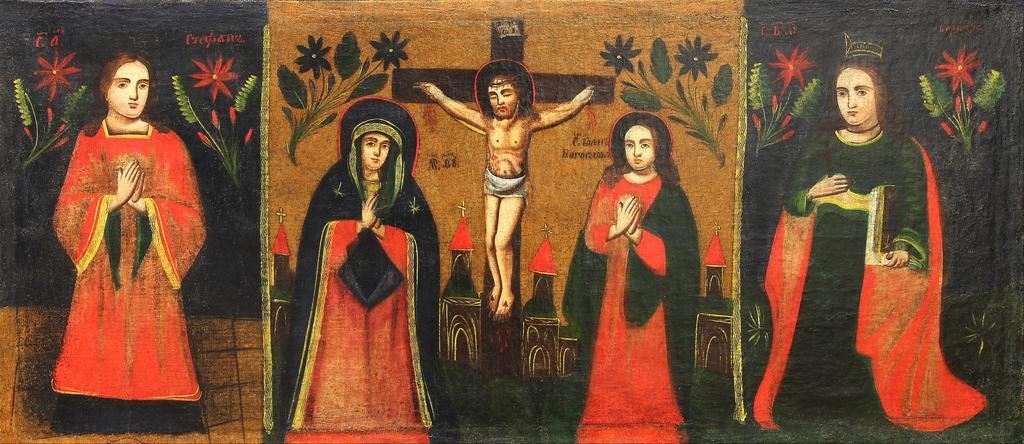 | Keywords: Unknown painter - Saint Stephan; Crucifix with the standing Virgin and John the Divine; Saint Varvara - Google Art Project.jpg commons date commons medium commons dimensions commons institution commons location commons references commons object_history commons exhibition_history commons credit_line commons inscriptions commons notes commons accession_number commons source commons permission commons other_versions commons zoom core title Saint Stephan; Crucifix with the standing Virgin and John the Divine; Saint Varvara core creator Unknown painter core date dateCreated 1850/1900 core location Unknown core format w144 6 x h63 5 cm Complete core type Drawings Watercolors core relation http //honchar org ua/halereya/ikony/ core rights Ivan Honchar Museum art artist_birth_place Ukraine art artist_nationality Ukrainian art artist_death_place Ukraine art artist_date 1860/1910 google display_date 1850/1900 google is_artproject TRUE google is_gigapixel FALSE google is_secured TRUE google partner/id 000000000544766c google picasa_token qEbdM2AD_v7XmMXu18bo3aNN0NI special url_id 4QFTDGkbxWUkKQ google partner/name Institution Ivan Honchar Museum special partner/name_no_lang National Center of Folk Culture - Ivan Honchar Museum PD-old-100-1923 1910 Unknown painters Google Art Project works by unknown artist |