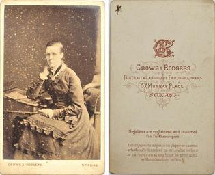 | Keywords: crowe & rodgers crowerodgers stirling scotland 57 murray place 57murrayplace cdv carte de visite cartedevisite reader scottish public domain publicdomain One of 140 images from a fascinating album. For more information see the full set From 26-28 February I will be in the Truprint Photography Gallery at the Who Do You Think You Are? Live event at London's Olympia. In the run up to that event, and with the help of show visitors over the three days, my aim is to use this album as an example of how Flickr, and the wider web community, can help identify these mystery, orphaned photograhs. Just how many of these images can we identify, and what can we find out about the people they portray? One of 140 images from a fascinating album. For more information see the full set From 26-28 February I will be in the Truprint Photography Gallery at the Who Do You Think You Are? Live event at London's Olympia. In the run up to that event, and with the help of show visitors over the three days, my aim is to use this album as an example of how Flickr, and the wider web community, can help identify these mystery, orphaned photograhs. Just how many of these images can we identify, and what can we find out about the people they portray? |