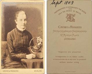 | Keywords: crowe and rodgers croweandrodgers stirling crowe & rodgers crowerodgers scotland 57 murray place 57murrayplace cdv carte de visite cartedevisite inscription scottish dated public domain publicdomain people indoor One of 140 images from a fascinating album. For more information see the full set Just how many of these images can we identify, and what can we find out about the people they portray? One of 140 images from a fascinating album. For more information see the full set Just how many of these images can we identify, and what can we find out about the people they portray? |