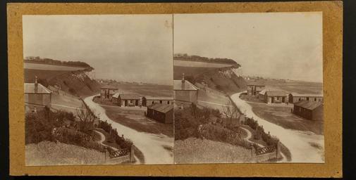 | Keywords: Possibly English south coast, judging by what look like white chalk cliffs? There also appears to be quite a large house just to the left.