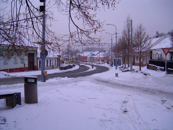Keywords: Únor2006 Komín008.jpg en winter Brno Komín cs zima Brno Komín ulice Hlavní pohled od kostela sv Vavřince own I Sáček senior 2006-02-02 Brno-Komín
