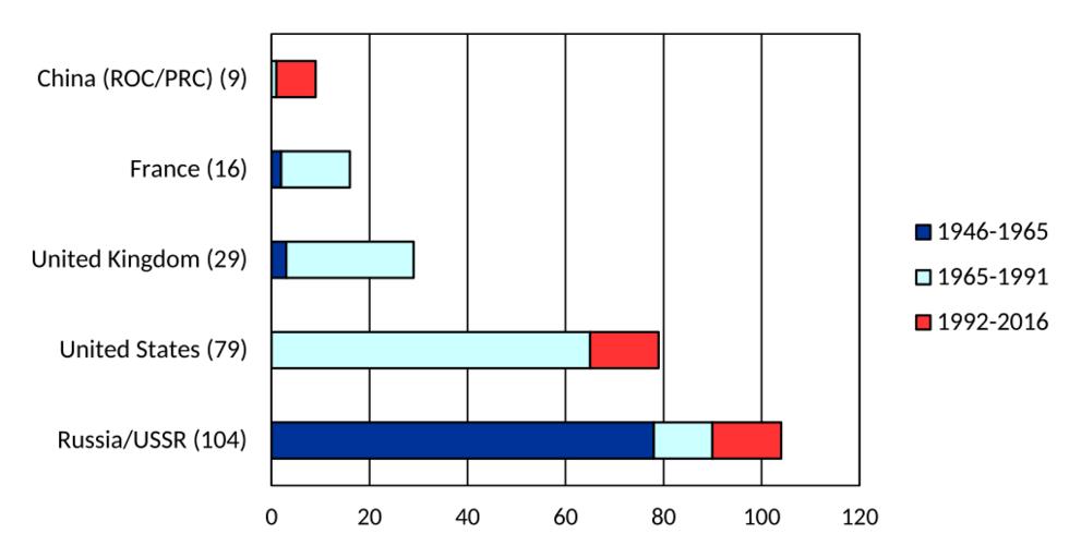 | Keywords: UNSC veto.svg English Number of resolutions vetoed by each of the five permanent members of the United Nations Security Council between 1946 and 2015 Source globalpolicy org1 Country - 1946-65 / 1966-85 / 1986-2007 / total China - 1 / 2 / 3 / 6 France - 4 / 11 / 3 / 18 UK - 3 / 21 / 8 / 32 US - 0 / 46 / 36 / 82 Soviet Union/Russia - 106 / 13 / 4 / 123 Note The People's Republic of China replaced the Republic of China on the Security Council in 1971 Russia succeeded the Soviet Union in 1991 SVG version of Image UNSC_veto png 2008-09-08 user norm77 based on work by user Polemarchus Image UNSC_veto png Norm77 Original upload log en wikipedia Wwbread CommonsHelper page en wikipedia UNSC_veto svg 2008-09-08 21 01 Norm77 800×370× 148587 bytes changed text to paths 2008-09-08 20 56 Norm77 800×370× 94752 bytes English Number of resolutions vetoed by each of the five permanent members of the United Nations Security Council between 1946 and 2007 Source globalpolicy org1 Country - 1946-65 / 1966-85 / 1986-2007 / total China - 1 / United Nations Security Council veto power |