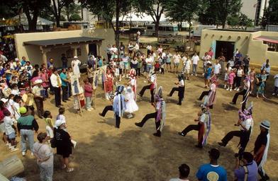 | Keywords: smithsonian institution smithsonianinstitution matachines dance adobe newmexico folklife festival outside hats native people center for folklife and cultural heritage centerforfolklifeandculturalheritage Description: Matachines dance in an adobe plaza constructed for the New Mexico program at the 1992 Festival of American Folklife. Creator/Photographer: Jeff Tinsley Medium: Medium unknown Culture: American Geography: USA Date: 1992 Repository: Center for Folklife and Cultural Heritage/Ralph Rinzler Folklife Archives and Collections Accession number: FAF1992_Tinsley_New_Mexico_011 Description: Matachines dance in an adobe plaza constructed for the New Mexico program at the 1992 Festival of American Folklife. Creator/Photographer: Jeff Tinsley Medium: Medium unknown Culture: American Geography: USA Date: 1992 Repository: Center for Folklife and Cultural Heritage/Ralph Rinzler Folklife Archives and Collections Accession number: FAF1992_Tinsley_New_Mexico_011 |