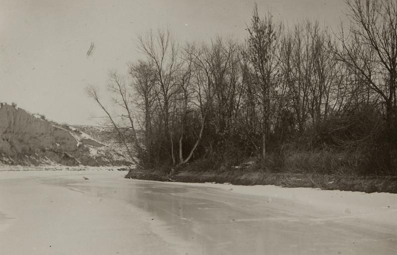 Accession Number: 2003.003.042 trees river landscape museumofphotographicarts Untitled (frozen river).jpg  1910 Gelatin silver print Institution Museum of Photographic Arts object history exhibition history credit line Gift of Graham and Susan Nash accession number 2003 003 042 https //www flickr com/photos/mopa1/5710955841/ PD-old-70-1923 Flickr-no known copyright restrictions Photographs by Richard Throssel Frozen rivers of the United States |