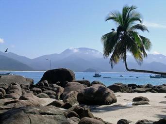Keywords: tropics tropical exotic tree ocean sea water sand beach mountains beautiful tranquil scenic summer sky landscape blue rocks