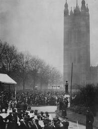 | Keywords: the women's library thewomenslibrary emmeline pankhurst emmelinepankhurst memorial statue victoria tower gardens victoriatowergardens hires blackandwhite monochrome outdoor architecture black and white 7JCC/O/02/156 Photograph, printed, paper, monochrome, general view of the scene at Victoria Tower Gardens on 6 May 1930, when the memorial to Emmeline Pankhurst was unveiled; manuscript inscription on reverse 'With great care. EK Marshall, 15 Gayfere St', printed 'Copyright Keystone View Company, 12 Wine Office Court, Fleet Street, London EC4' 7JCC/O/02/156 Photograph, printed, paper, monochrome, general view of the scene at Victoria Tower Gardens on 6 May 1930, when the memorial to Emmeline Pankhurst was unveiled; manuscript inscription on reverse 'With great care. EK Marshall, 15 Gayfere St', printed 'Copyright Keystone View Company, 12 Wine Office Court, Fleet Street, London EC4' |