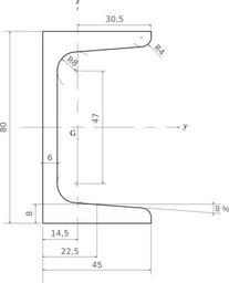 Keywords: Upn 80.svg en Standard 80 mm high U-beam with dimensions fr UPN 80 avec cotes 2012-04-23 own Cdang inkscape cc-zero Uploaded with UploadWizard Drawings of beams Steel-profiles Structural steel