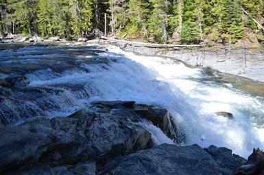 Keywords: outdoor snowbank snow waterfall landscape water stream creek riverbed river Near McDonald Falls, just upstream from Lake McDonald Near McDonald Falls, just upstream from Lake McDonald