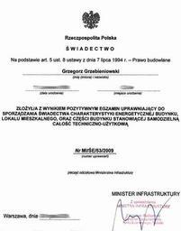 | Keywords: Upr CE.jpg from User Powerek38 Basically the Polish Construction Act Prawo budowlane requires each building to have a special document which can be called in English the Energy Certificate as far as I know it states how much energy this building uses etc This file is a specimen of a licence for an auditor who having obtained such a licence can issue the Energy Certificates pl Wzór uprawnień Certyfikatora Energetycznego own Energia-audyt 2009-09-13 Check categories 2009 November 17 pl wikipedia Certyfikator_energetyczny Architecture 3 Documents of Poland |