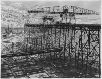 | Keywords: "Upstream concrete placing trestle with Hammerhead crane, whirley and erecting stiffleg derrick. Average height of... - NARA - 294230.tif Scope and content Photograph from Volume Two of a series of photo albums documenting the construction of the Grand Coulee Dam and related work on the Columbia Basin Project General notes 294230 Local identifier Department of the Interior Bureau of Reclamation Engineering and Research Center 05/18/1981 - 03/04/1988 NARA's Rocky Mountain Region Denver NRGA Building 48 Denver Federal Center West 6th Avenue and Kipling Street Denver CO 80225-0307 1936-01-28 Record group Record Group 115 Records of the Bureau of Reclamation 1889 - 2008 Record group ARC 444 Photograph albums compiled 1903 - 1972 Series ARC 293611 File unit File unit ARC Variant control numbers NAIL Control Number NRG-115-CONSTPHO85006-COLBASIN2960 yes Other versions <gallery> File Upstream_concrete_placing_trestle_with_Hammerhead_crane _whirley_and_erecting_stiffleg_derrick _Average_height_of _-_NARA_-_294230 tif tif File Upstream_concrete_placing_trestle_with_Hammerhead_crane _whirley_and_erecting_stiffleg_derrick _Average_height_of _-_NARA_-_294230 jpg jpg </gallery> NARA-cooperation PD-USGov Construction of the Grand Coulee Dam NARA TIF images with categorized JPGs |