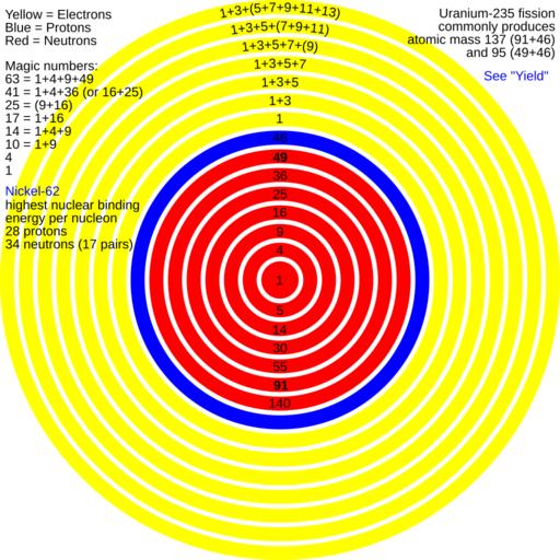 | Keywords: Uranium atom.svg The png image above is incorrect but the original svg is correct Seems to be some sort of bug with the wikimedia software Electron proton and neutron shells of uranium atom Note that not all of the shells shown are completely filled And not all possible shells are shown Heavier elements would have even more neutron shells Also be aware that some nuclei are shaped more like snowmen than spheres Image created with Inkscape | ||||