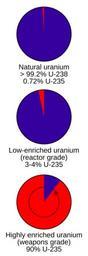 | Keywords: Uranium enrichment proportions.svg Created with Inkscape Pie-graphs showing the relative proportions of uranium-238 blue and uranium-235 red at different levels of enrichment Own 2006-09-13 User Fastfission If you want to credit someone credit Wikimedia Commons Otherwise don't credit anyone that's fine by me --Fastfission 15 18 14 April 2008 UTC Swedish version Spanish version Mandarin chinese version Hebrew version French version Translation possible ValidSVG Fastfission Uranium enrichment |