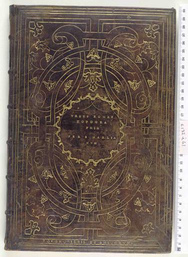 Keywords: Urbis Romae topographia - Upper cover (c132i61).jpg Style Interlacing ribbon/strapwork Mottoes; Caption Upper cover; Colour Brown; Edge Unspecified exhibition history Decorative Technique Marbled Tooled in gold; Cover Material Calf Macchi states; c 1550 Paris bound by the Cupid's Bow binder G D Hobson Maioli Canevari and others p 43 n 3 pl 48; H M Nixon Bookbindings p 59 n 112 pl CVI Another example of this kind is reproduced in M von Arnim Einbandkunst n 39 Petrus Crinitus De poetis latinis Florence Giunta 1502 See A Hobson Renaissance book collecting Appendix I Grolier's bindings classified by workshop pp 223-229 V France 1547-1565 a Cupid's Bow Binder p 228 object history Text 1544; Rome; Grolier Jean 1479-1565 object type Cc-zero place of creation Binding France place of discovery Unspecified British Library image http //www bl uk/catalogues/bookbindings/LargeImage aspx RecordId 020-000006774 ImageId ImageId 42992 Copyright BL Urbis Romae topographia Uploaded with GWToolset Urbis Romae topographia - Upper cover c132i61 http //www webarchive org uk/bldatasets/bindings/7537_4 jpg Bookbinding 16th-century bookbinding British Library Bookbindings |