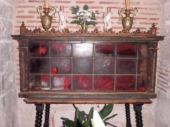 | Keywords: UrnaPastor.JPG en Glass coffin of the shepherd who found the Soterraña Virgin inside of the church es Urna funeraria donde reposan los restos del pastor que encontró la imagen de la virgen Soterraña en el interior de la iglesia own Osado 2009 Church of Santa María la Real de Nieva Coffins Church tombs in Spain |