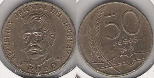 Keywords: URY009.JPG Uruguay 50 pesos 1971 Coins of Uruguay José Enrique Rodó People on coins 2006-09-17 own assumed B25es